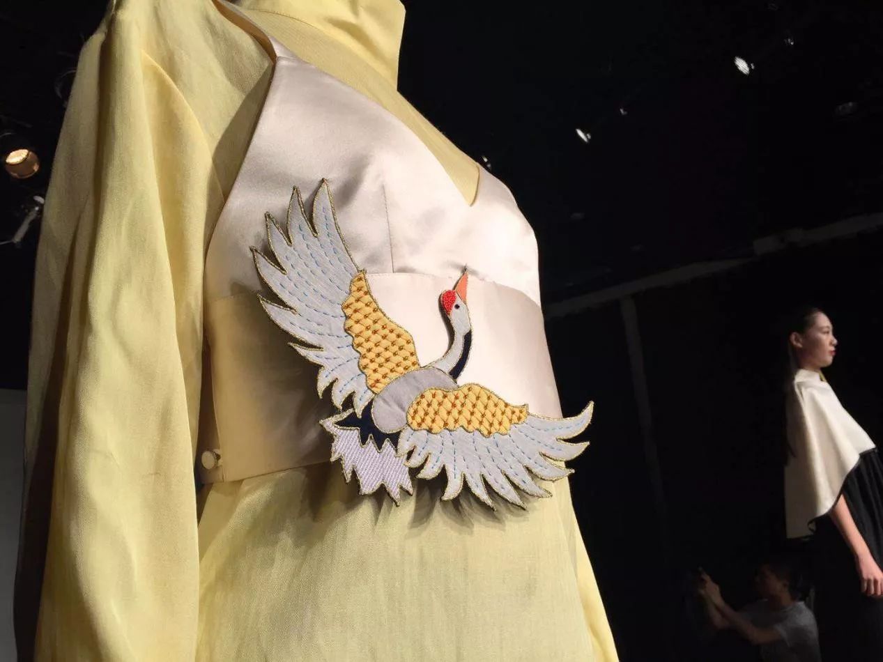 身着精美汉绣服装的模特,款款走来,演绎着时尚与传统的完美结合。也标志着纺大对汉绣等非物质文化遗产的研究与传承迈上了新的台阶。
