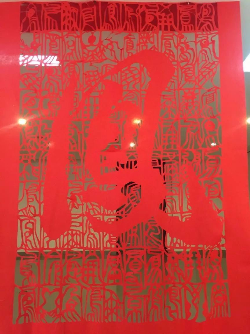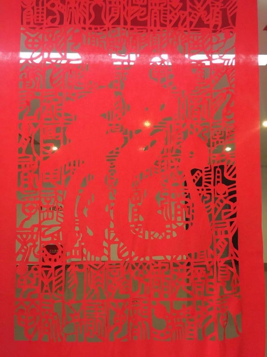 何红一教授将百龙图带到美国进行展览,这幅剪纸里包含了一百个不同的龙字。