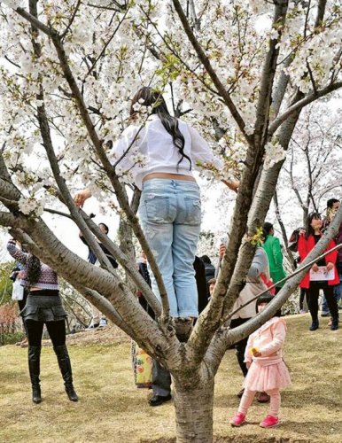据参考消息网报道 有港媒称,20日在上海顾村公园樱花节涌入了近16万游客,许多游人为了拍照取景,不仅攀爬樱花树,还抖动树枝,制造“花雨”。食物垃圾到处乱抛,对于园方“文明游园”的呼吁根本置若罔闻。