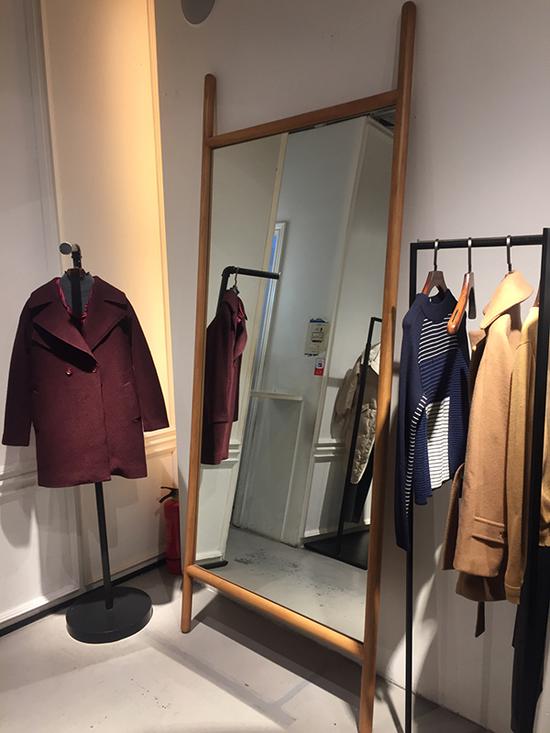 2018年12月11日,上海正大广场三楼,esons店内一面没有固定的穿衣镜。澎湃新闻记者 李佳蔚 摄正大广场三楼的esons店内,木质边框的大型穿衣镜斜靠在墙上,记者伸手往外拉,镜子便倒过来。该店店员承认,镜子没有专门做过固定,并表示不知道具体情况。