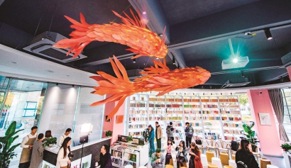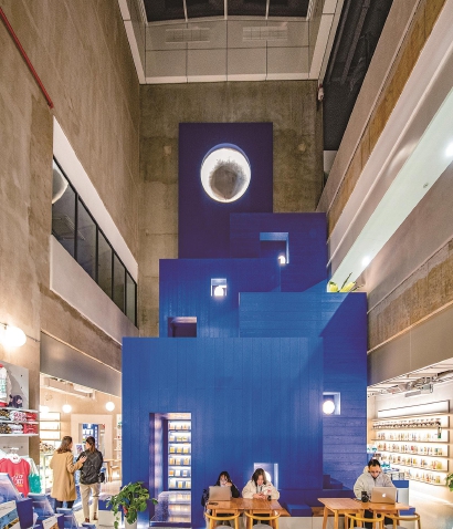 交通大学 文创·书里 艺术家让两条象征智慧和好运的锦鲤从星光流转的知识银河中腾跃而出,寓意交大学子们“学运高走” 上海体育学院 绿瓦体育书店 绿瓦体育书店中庭13米高的“明月山主峰”寓意“书山有路勤为径”当我们在怀念和期待大学书店的时候,或许是在渴求一种强烈的精神引领。最近,上海交通大学的“文创·书里”、华东师范大学的“知先堂”和上海体育学院的绿瓦体育书店陆续开张,为师生提供了一处身边的精神家园。