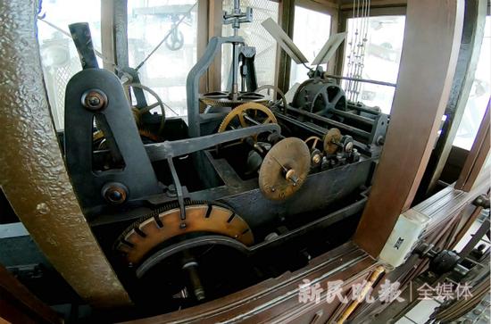 图说:机芯房内,就是大钟的“心脏”。新民晚报记者 孙中钦 摄