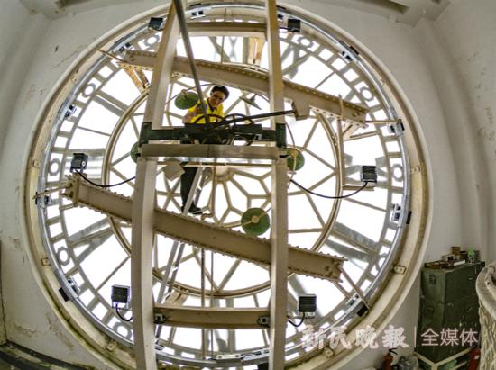 图说:大钟钟面直径达5.4米。新民晚报记者 孙中钦 摄首次大修 91年“洪钟之声”依旧