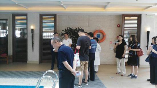 游泳一直是夏日里市民运动休闲的首选,而在大家印象中,五星级酒店的泳池无疑是诸多选择中令人较为放心的。可近日,却有市民向“12345”市民服务热线反映:复旦皇冠假日酒店内的游泳池水质存在尿素过高等水质问题,并且该游泳池有多位无资质教练私自开设游泳培训班,导致小孩在学习过程中出现秩序混乱和安全隐患。而“12345”市民服务热线6月30日接到市民反映后,第一时间联系相关职能部门;但对方却以职责“权限”为由退单。为厘清权责,平台牵头邀请各职能部门对泳池进行现场调研及座谈,解放日报·上观新闻记者全程参与了这一活动。
