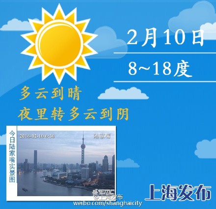 假期你是悠闲地过着还是继续忙碌着?今天是初三,白天依然晴朗,最高18度。但太阳将于明天开始暂时告别上海,明天阴到多云有阵雨;接下来的4天(自初四一直到上班的第一天)均有雨水降临。