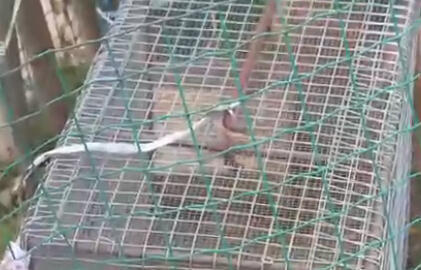 村民们说,在发生家禽被不明动物咬死的事情之后,相关部门立即在村里设置了诱捕笼,昨天上午他们在对诱捕笼查看时,发现笼内的母鸡遭到了袭击。 (来自:上海电视台)
