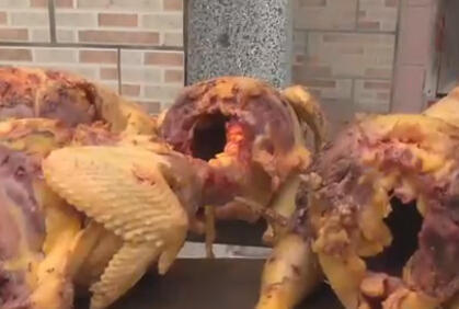 在距离上海野生动物园一箭之遥的浦东宣桥,有两户村民家饲养的64只鸡鸭一夜之间被不明动物咬死。昨天(26日)记者再次前往当地采访,村民说三天来“凶手”一刻没消停,连续作案,已经咬死100多只家禽。村民们说,这种不明动物一般在夜间出没,往往会在鸡、鸭等家禽的背部和臀部位置咬下至少2到3处的伤口,吸血但不吃肉。 (来自:上海电视台)