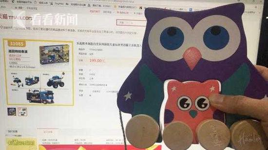 姚先生告诉记者,双十一他在天猫哈姆雷斯旗舰店,购买了三件乐高玩具,加上满减等活动,市场价六七百一盒的乐高,算下来只要200多。没想到,等17号收到快递,乐高积木竟然变成了一两岁孩子玩的猫头鹰玩具。