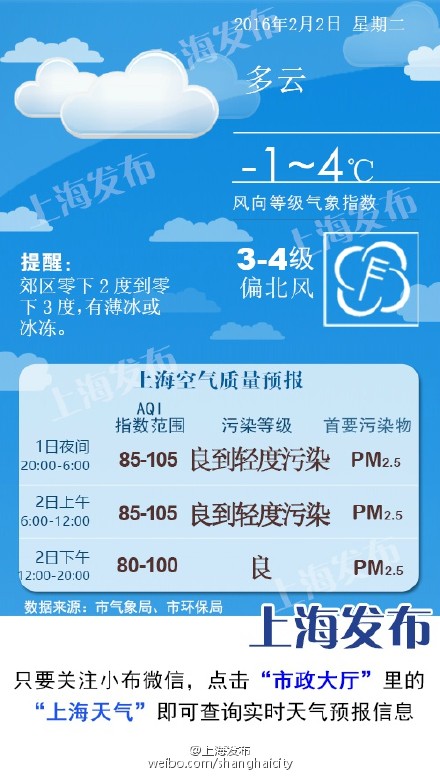 沪明天最低零下1度郊区县更冷 周四有雨