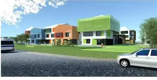 ▲主入口效果建设内容为:全日制幼儿园,具体建设内容包括,幼儿园园舍、分班活动场地、30米跑道、戏水池、沙池,同时包括一楼屋面活动平台、移动式垃圾房、教工餐厅及门卫室等。