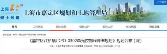 《嘉定区江桥镇JDPO-0302单元控制线详细规划》公布