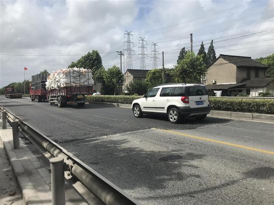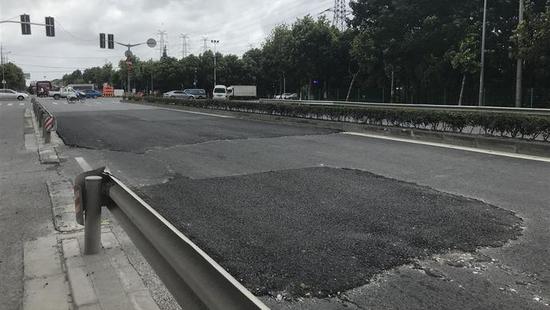 嘉定浏翔公路连环坑塘已完成修复 卡车司机:车速快了