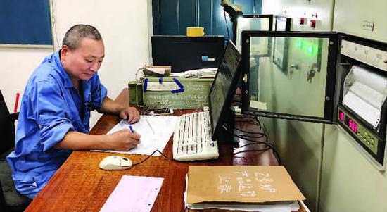 漫漫长夜里,上海锅炉厂热处理工时刻观察记录炉内温度数据。