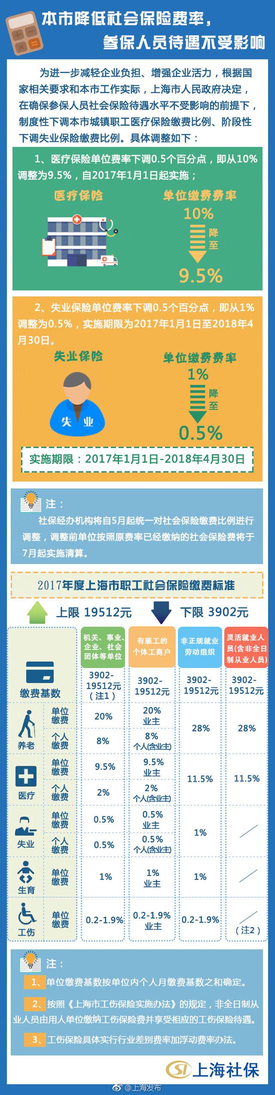 [快讯:上海2017年度各类人群社保缴费比例标准公布!]#最新#小布此前已公布过2017年度本市职工社会保险缴费基数上、下限为19512元和3902元,那么你和单位分别该按多少比例缴费呢?@上海12333 今天发布2017年度各类人群社保缴费比例标准,机关、企事业、社会团体、个体工商户等各类人群的社保缴费比例标准见下图↓