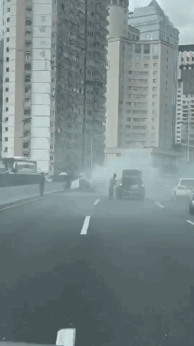 事发时,两辆轿车在高架上发生碰撞,白色轿车随后撞击中间隔离带并四脚朝天侧翻,车身冒出浓烟。消防公安赶赴现场处置,车内人员随即逃生。事故并未造成人员伤亡,事故原因尚在调查中。