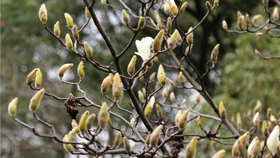市花白玉兰提前开花 比常年提早两周刷新最早开花纪录