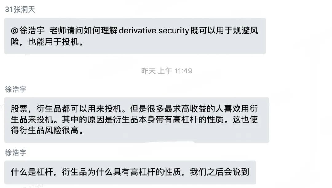 金融学子们同样积极配合学院线上教学工作。18级本科生陈奕扬同学表示,在徐浩宇老师的投资学课程上,虽然课程是采用ppt录播的方式进行,但是大家在听课的过程中就开始进行了热烈的讨论和提问。大家对于新知识的热情完全没有因为不在一个教室而变得冷清。课程中,老师及时的解答让同学们在网络的联结下也体会到了课堂的生动直观和学习乐趣。课后,同学们也在热烈讨论疫情发展和经济走势之间的关系,将生活与课程很好的联系在了一起。