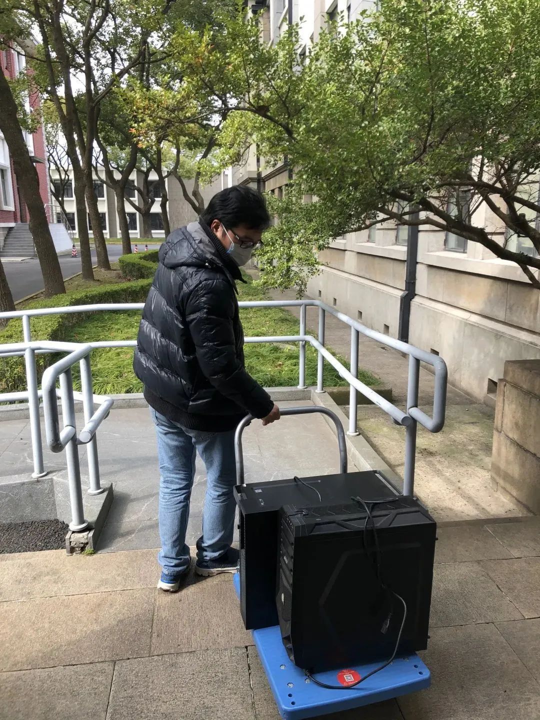 值班的行政办公室主任彭伟老师采用“无接触方式”为老师搬运设备本科教务秘书陈子乔表示,从开始准备线上教学到现在正式进入线上教学,我们和每位老师一起都付出了很大的努力。开课以来,每当老师回复我课程很顺利,学生满勤的时候都让我觉得所有的付出都是值得的。研究生教务秘书姚佳玥则表示,线上教学对老师和我们来说都是一次挑战,不仅是授课形式的创新,更是一次思维方式的变革,希望通过我们的共同探索,老师们能够顺利完成线上教学任务,降低疫情对学生课业学习带来的影响。