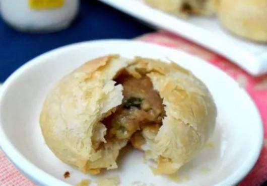 将面团对折后按扁,擀成圆形面皮,放入肉馅,包起来,把口收紧封严。翻面,用手掌稍加按扁。做好后,全部放入烤盘中。烤箱上下火190度预热,将烤盘放置烤箱的中层烤制30分钟,烤好后取出,趁热吃味道最好,又香又酥哦!