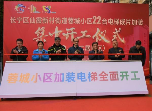 新民晚报讯 (实习生 陈佳琳 记者 屠瑜)今天上午,长宁区仙霞新村街道蓉城小区业委会所辖仙逸和芙二两个居民区的22台电梯同时开工,这个老年人口占比超过40%的老公房区域迎来了“成片化加梯”小高潮。同时,这也是长宁区目前规模最大的成片化加梯集中开工居民区。