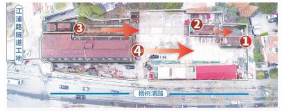 由于地处江浦路越江隧道工程明挖暗埋段箱涵正上方,经专家论证、杨浦区文化局及市政府批准,江浦路104弄住宅采用移位+回迁的方法进行保护,即先将保护建筑平移至临时存放位置,让出江浦路越江隧道施工区域,待隧道施工完成后,再将建筑物进行回迁。 本报记者 张海峰 摄