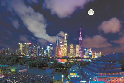 浦江两岸皓月当空 与璀璨灯火相映成辉