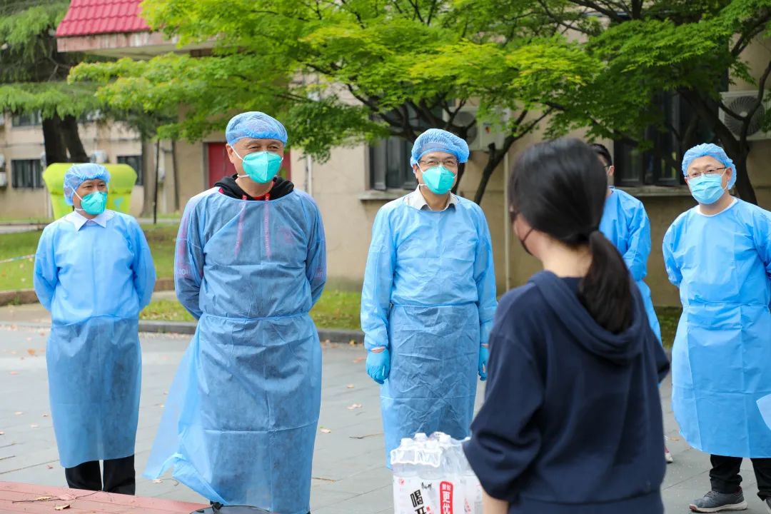 4月24日,校党委书记许涛一行走访调研国定校区疫情防控网格化管理运转情况,并看望慰问国定路校区和武东路校区留校教师志愿者。徐飞、陈宏、方华、朱鸣雄等校领导陪同调研。
