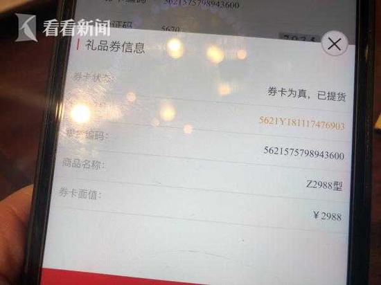 不过这家公司微信记录的卡券信息上却清楚写明,此券卡是“面值”2988元。这回,客服热线又辩称是“误发货”。