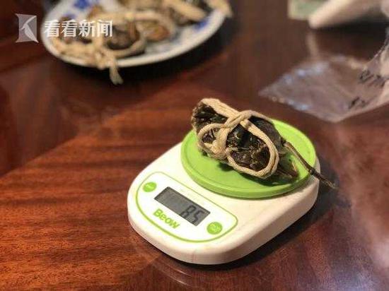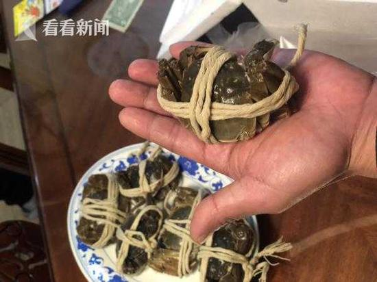 无独有偶,家住闵行区剑川路的乔先生有一张紫澄牌2988型蟹券,上面写着能换4.5两公蟹、3.5两母蟹各五只。昨天,乔先生宴请朋友一起来品蟹,没想到送来的蟹相当“迷你”,母蟹一只一两多,还没有一根棒棒糖长。公蟹勉强超过了二两,也是小的可怜。宴席只好临时移师外面餐馆。