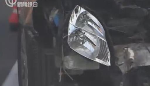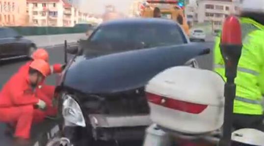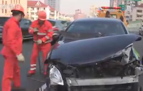 轿车内环高架失控撞破隔离带 所幸女司机未受伤