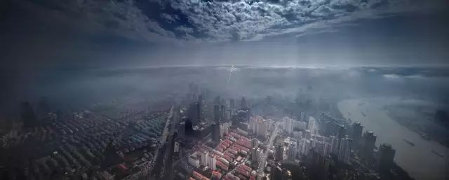 这个画面里的上海,看上去如同一个罪恶之城,但其实只是在清晨的薄雾里
