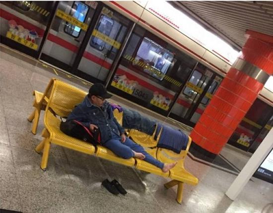 原标题:新闸路地铁站台竟有人晾衣睡觉!累了也不能这么干