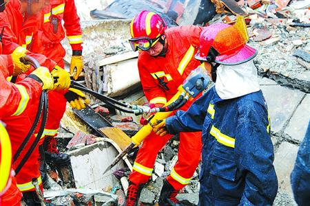 据塘郁村一位村民介绍,水景酒楼是当地一家比较受欢迎的农家乐,共2层高,1楼设有厨房、配菜间,2楼设有包间。综合多名村民的介绍,爆炸发生在昨天9时,“声音很响”,厨房间和上面的包间发生了坍塌,正在厨房间工作的工作人员被砖块等埋压在废墟下,“房屋倒塌后废墟的缝隙里还在着火”。“整幢房子大概有1/4塌掉了,旁边的房子也开裂了,感觉随时有坍塌的危险。”一名村名说,青安中队是最先赶到现场的消防队,“消防队员到场后一边灭火,一边救人”。