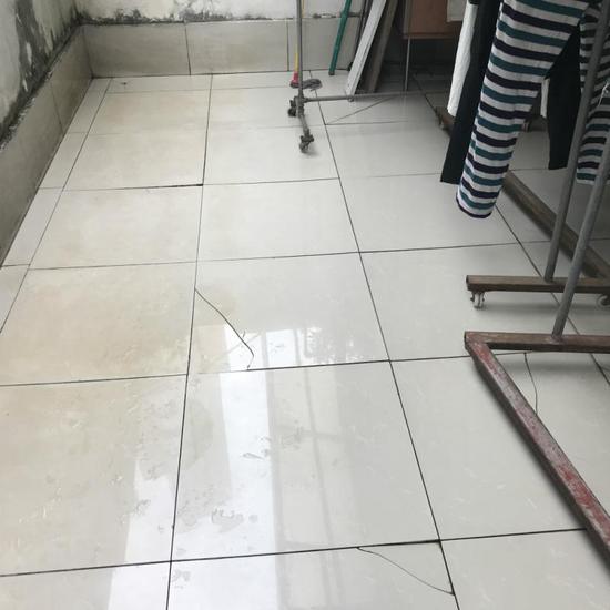 新老小区之间的高差。 居民家中的地砖崩裂、松动。记者了解到,早在2015年,针对海珀佳苑住宅项目基坑施工过程中造成周边房屋变形的情况,上海市建筑科学研究院房屋质量监测站就出具过一份检测报告。从居民拿出的报告副本看,当时的检测数据,是金汇苑小区3栋居民楼均有沉降倾斜,但报告的最终结论是:通过对三幢房屋的裂缝损伤现状进行检测,房屋当前出现的裂缝损伤主要以构件界面缝、地坪裂缝、房屋主体与室外地坪接缝为主,尚未发现有明显影响房屋主体结构安全的裂缝损伤出现。建议在后续基坑施工过程中,加强对周边房屋的监测巡视,尤其是实施了临时支撑加固措施的金汇苑小区的巡视。